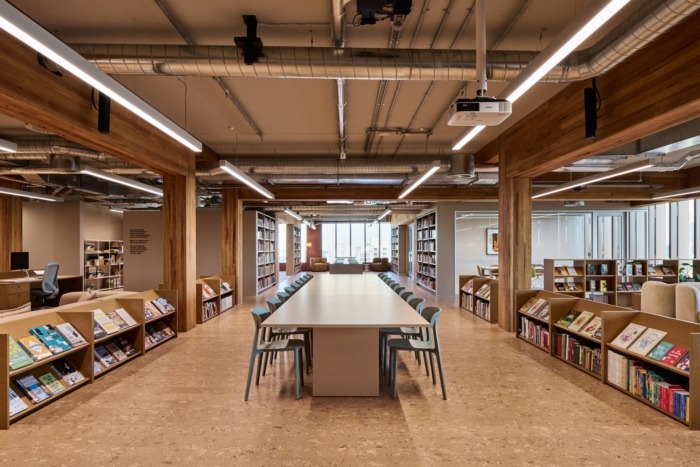 Một thư viện lưu trữ chạy dọc hành lang dẫn vào khu vực phòng họp dành cho khách hàng, đóng vai trò như cầu nối giữa quá khứ và hiện tại. Khác với văn phòng cũ, nơi khu lưu trữ bị giấu kín, thư viện mới được đưa về trung tâm, vừa có giá trị hoài niệm vừa góp phần kích thích tương tác sáng tạo giữa các nhóm làm việc.
