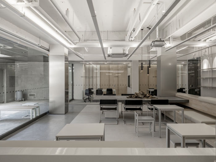Ý tưởng cốt lõi của thiết kế là mô phỏng một “nhà máy hướng đến tương lai”. Để truyền tải sự chính xác và hiệu quả của công nghệ công nghiệp, các vật dụng và kết cấu nội thất được chế tạo riêng từ hệ khung nhôm kỹ thuật. Hệ thống đèn trần dạng tuyến tính nhiều lớp giúp định hình nhịp điệu kiến trúc và trật tự không gian một cách rõ ràng và hiện đại.